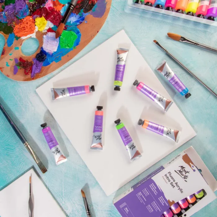 Mont Marte Fluoro Acrylic Paint Intro Set Premium 8pc x 18ml